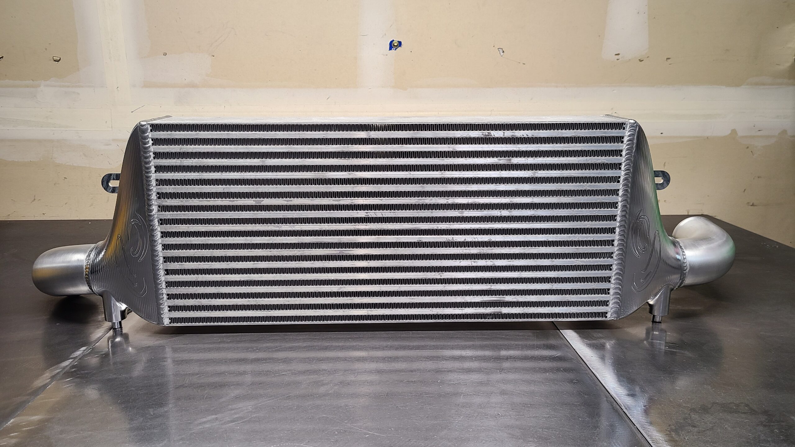 5.1" 991 Turbo Intercoolers with billet end tanks, interchangeable between stock and 2.5" inlet and outlet.