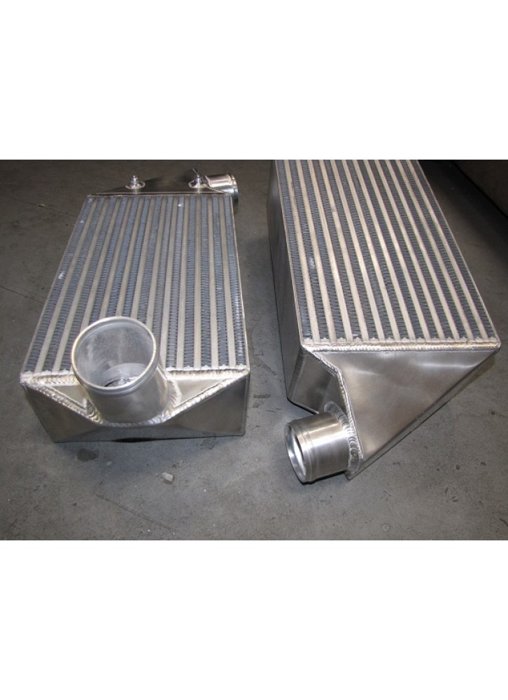 Using the same proven 4.5″ core used in our #1 Audi smic, we have developed a highly efficient 996/997 Turbo side mount intercooler. ?They are available with both cnc’d factory inlet/outlet or with 2.5″ in-out with hose kit and clamps. ?We have now moved to cast end tanks and machined core end plates for 2lbs of weight reduction.