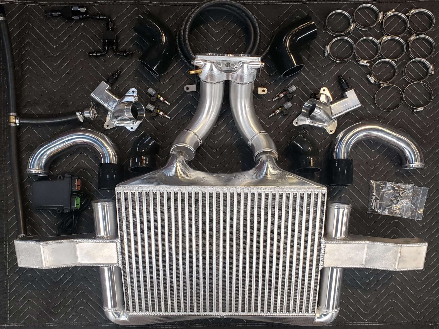Complete 4.0T air to air intercooler solution. Optional port fuel injection solution integrated to the kit with 4 x 1300cc injectors, silly rabbit tuning port fuel injector controller, wiring harness and lines. Port fuel uncorks the power limitations of the OEM fuel system permitting 1000+ whp on ethanol, race gas etc.