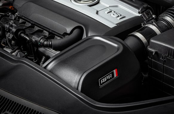 The APR Intake System lets your engine breathe! This closed design rejects power-robbing heat from the engine bay thanks to the high heat deflection material used in the intake’s design. It provides an unrestrictive path for cold, dense air fed from outside of the engine bay to maximize power. We use a high flow filter that provides excellent filtration without the restrictions, which keeps the engine clean while optimizing power delivery. On the flow bench, we recorded a 31% increase in CFM over the factory airbox, and a 24% increase over the total system. This translates to a sharper throttle response, lessened strain on the turbocharger, and more horsepower and torque. The system is an excellent value. It installs in minutes, looks fantastic, delivers a sporty engine note, and is recommended at all stages of performance.The APR Intake System is modular. It connects to the factory turbo inlet piping, and provides substantial gains. Those looking to complete the system can opt for the optional APR Turbo Inlet pipe to increase flow over the smaller factory turbo inlet piping. Our inlet pipe is a continuous massive pipe that connects to the turbocharger via a port-matching silicon coupler. The PCV system conveniently connects to the intake via a billet aluminum adapter. Lastly, the system uses a flex coupler that allows adequate engine movement and flex.