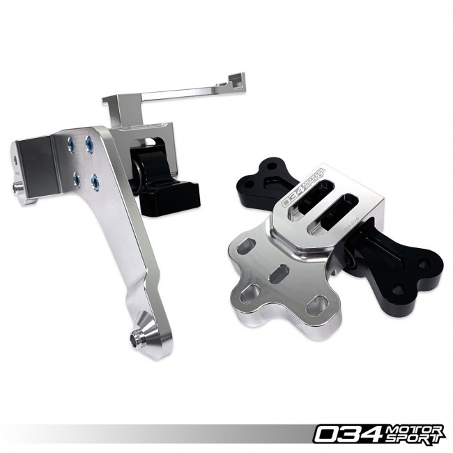 034Motorsport’s Motorsport StreetSport Mounts for Audi 8S TTRS and 8V.5 RS3 models are the new standard in ultra-high performance. These mounts are designed with extreme performance in mind, manufactured from billet aluminum and high-durometer rubber, making them virtually indestructible, while maintaining better ride characteristics than polyurethane alternatives. These mounts have a lifetime guarantee regardless of power level applied and type of track racing they are used for.