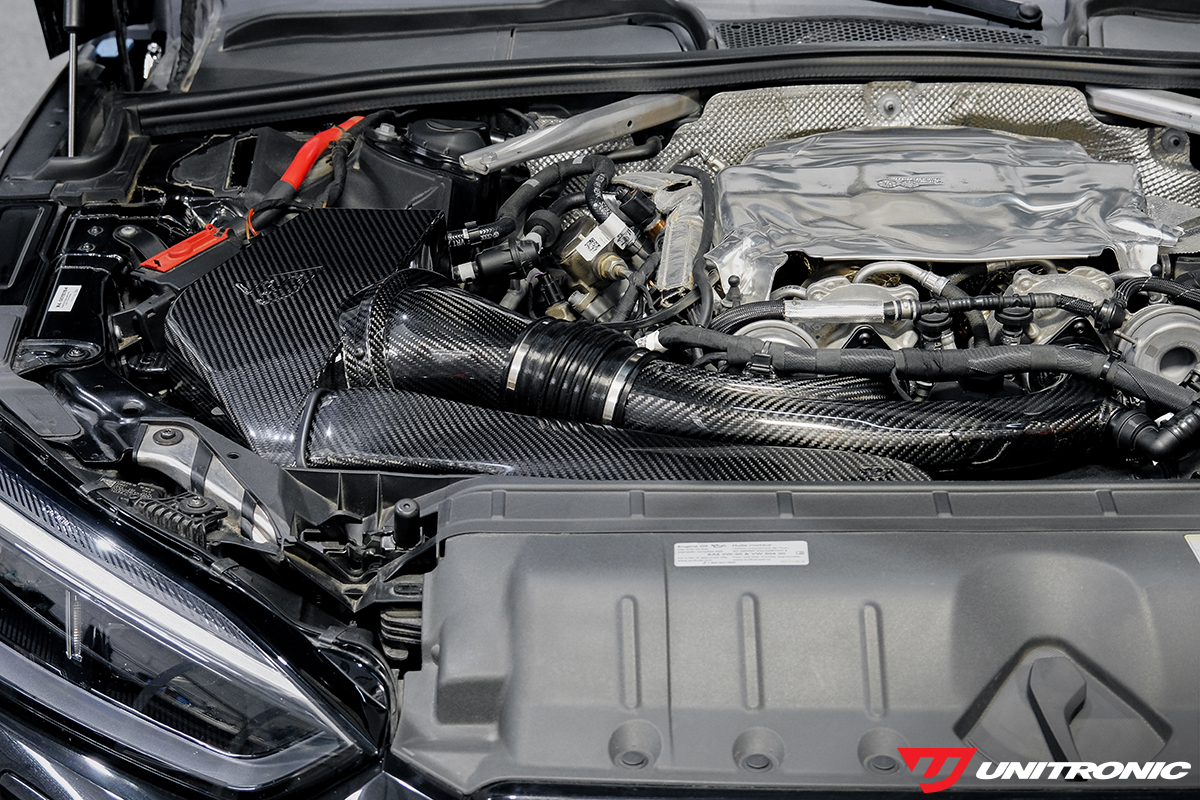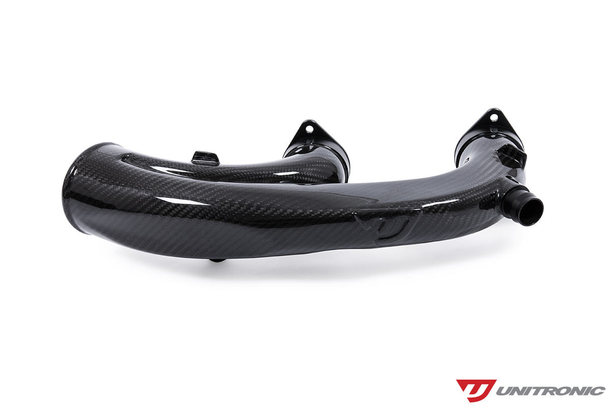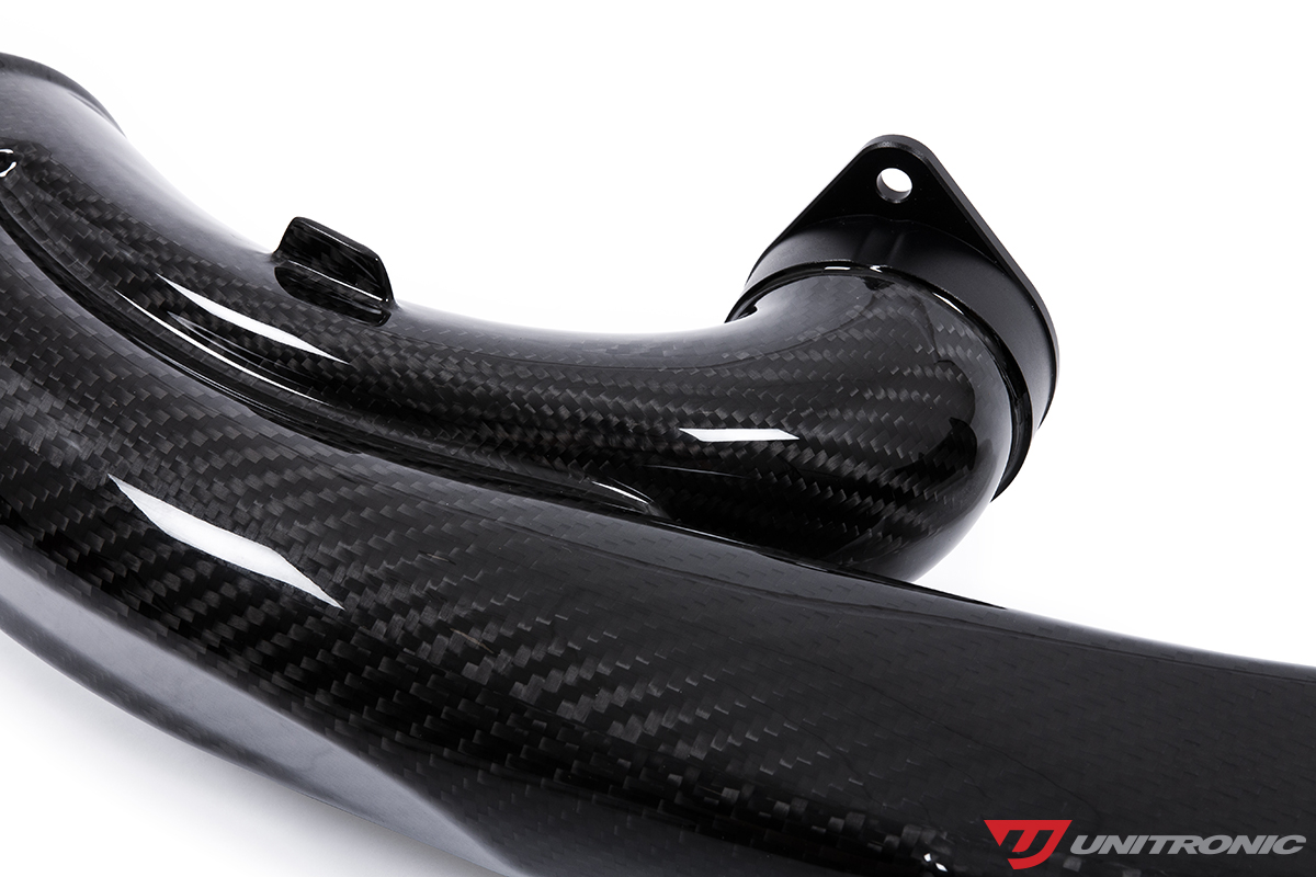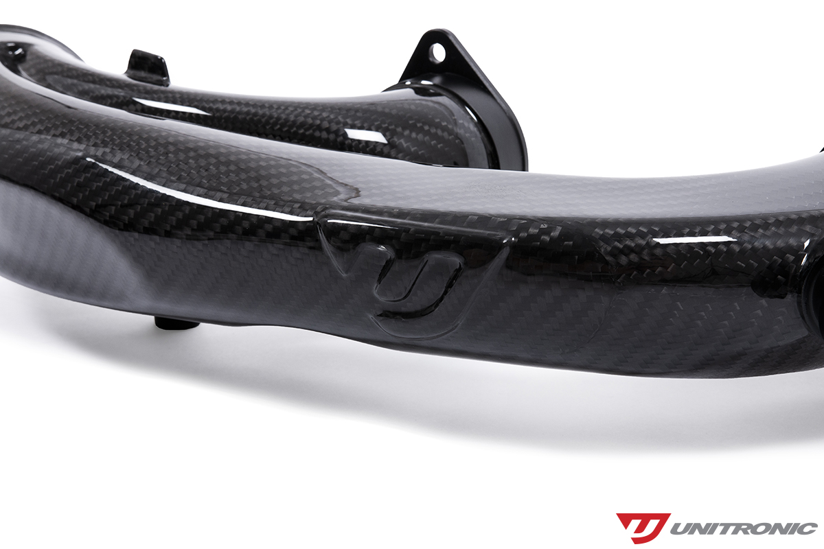 Constructed of high quality 2/2 twill carbon fiber, this Turbo Inlet features a larger bore to draw massive amounts of air then with the help of its integrated divider, sends equal amounts of air to the individual turbochargers. A factory style PCV connection is maintained for OEM-level fitment as well.
