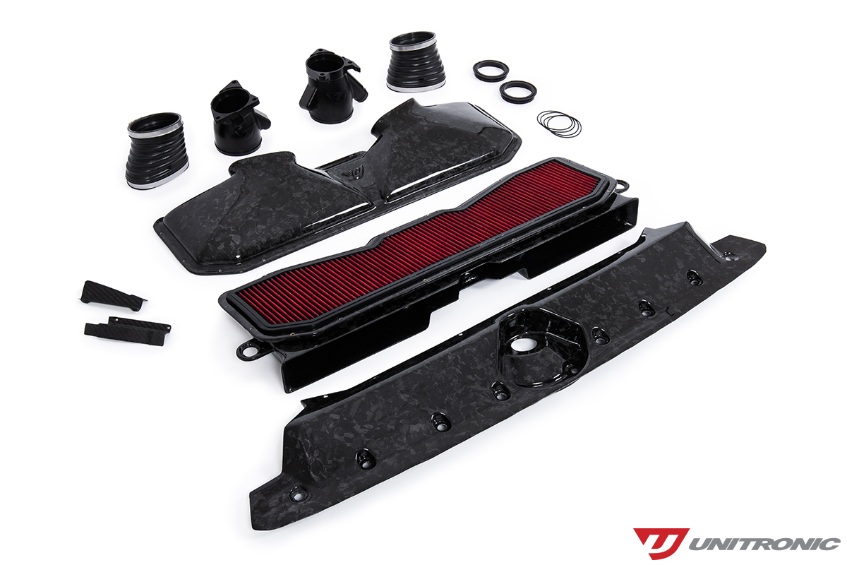 With five different finishes to choose from including; Gloss Carbon, Matte Carbon, Forged Carbon, Red Carbon Kevlar and Blue Carbon Kevlar, combined together with modular adapter rings on the Turbo Inlets to allow for fitments with both the stock and hybrid turbos, this Intake System allows you to personalize your engine bay with a premium look to match its superior performance.