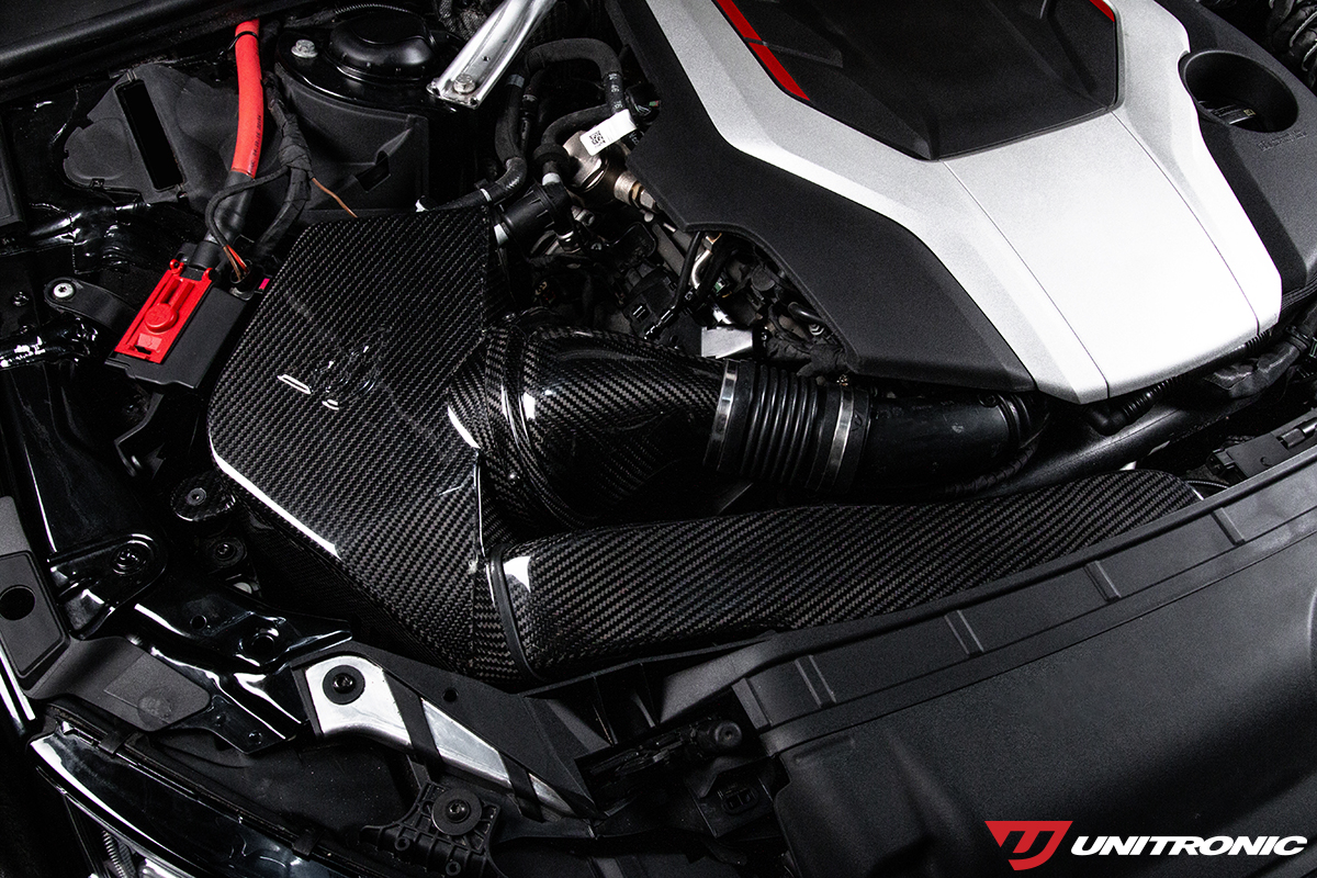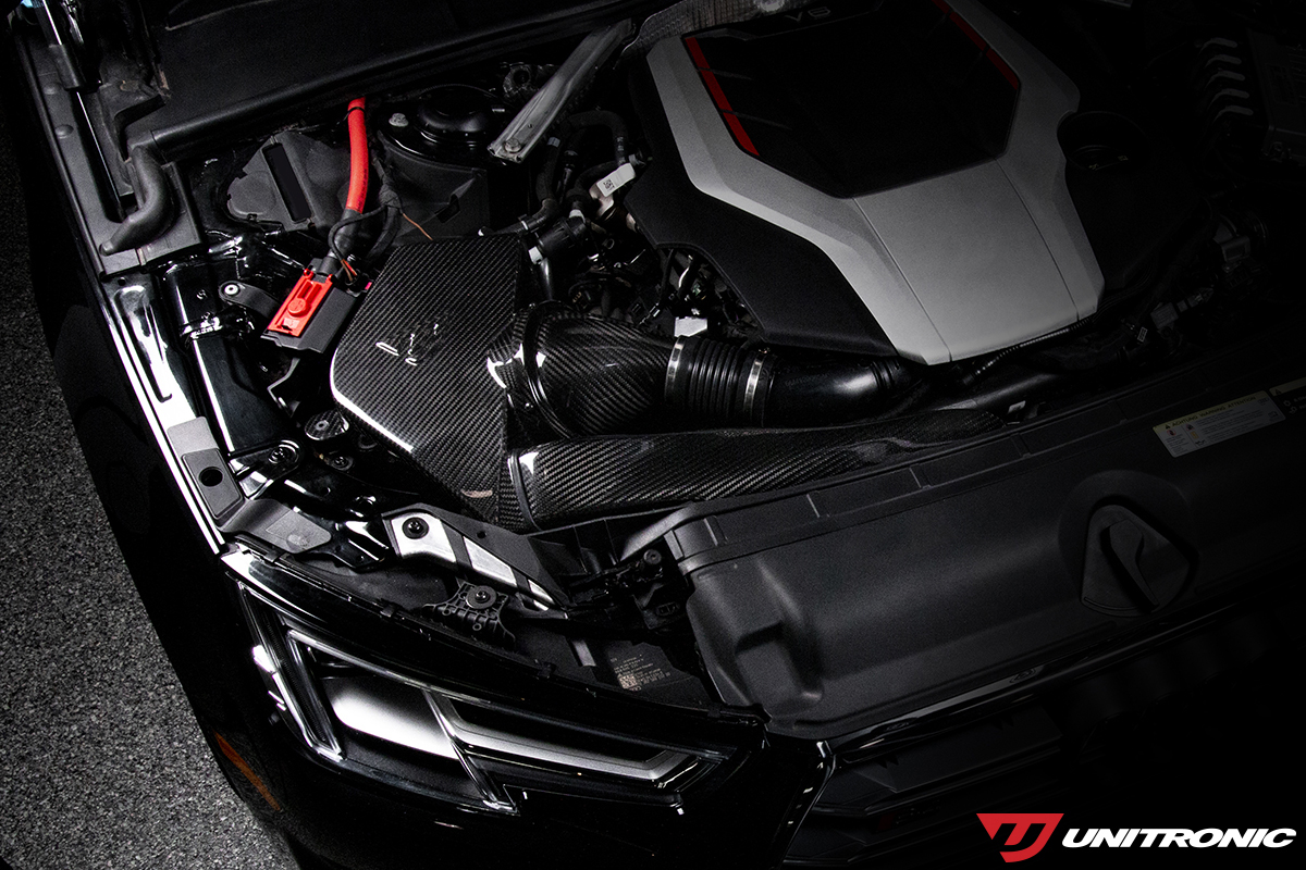The Unitronic Carbon Fiber Intake System for vehicles equipped with the 3.0 TFSI EA839 engine is designed to be simple to install with all the necessary hardware included. Installation time will take approximately one hour including the removal of the factory intake and installation of your new Unitronic Intake system.